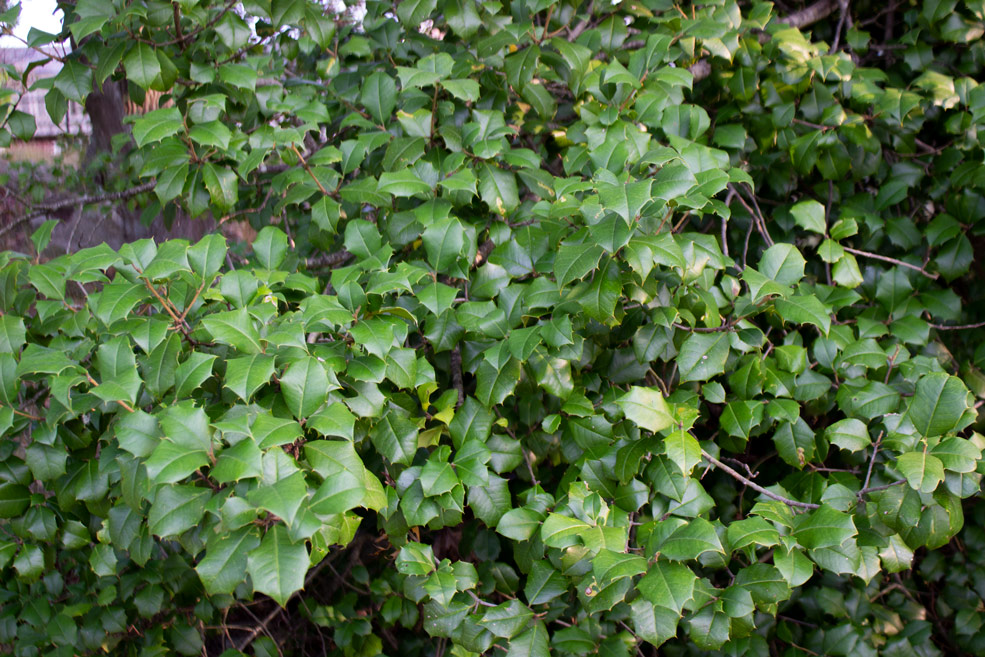 Look for: Dark green elipitic 1.5-3.5 inch leaves with large remote spiny teeth, evergreen